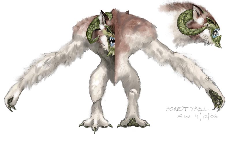When it came to monster design it was important to put our own unique stamp on the appearance and personality of the beasts. Whether savage wildlife in Vanaheim or frozen ice trolls in Jotunheim, we made it our point to create unique interpretations that you would only find in Mythica. John Shroades’ inventive take on the Fire Giants really served as a catalyst for everything else, but from those early beginnings we designed over 200 completely original creatures, many with a system of interchangeable armor bits or accessories. A brief selection follows.